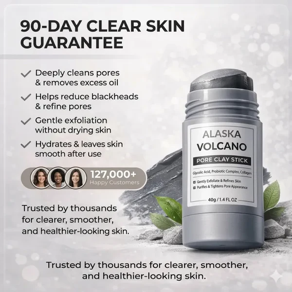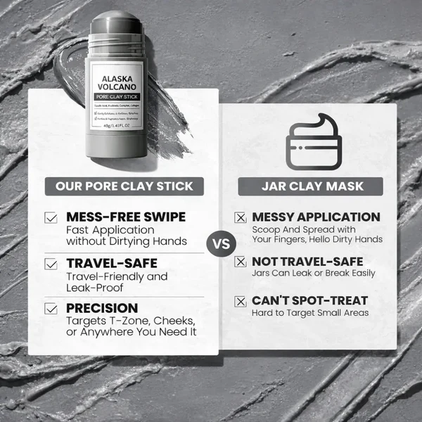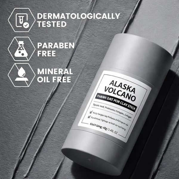 Say goodbye to blackheads and messy clay masks forever. The Alaska Volcanic Clay Stick is a high-performance detox treatment designed for the modern skincare lover who demands results without the hassle. Infused with 300,000ppm ultra-fine charcoal particles—50 times smaller than a grain of flour—this stick glides on smoothly to dissolve deep-seated blackheads and absorb 2x more excess oil than traditional masks. Formulated with Alaska Volcanic Clay (pH 5.5) and 5% Glycolic Acid, it gently resurfaces your skin, removing up to 76% of dullness and refining texture in just one use. No sticky fingers, no tight skin—just visible clarity.