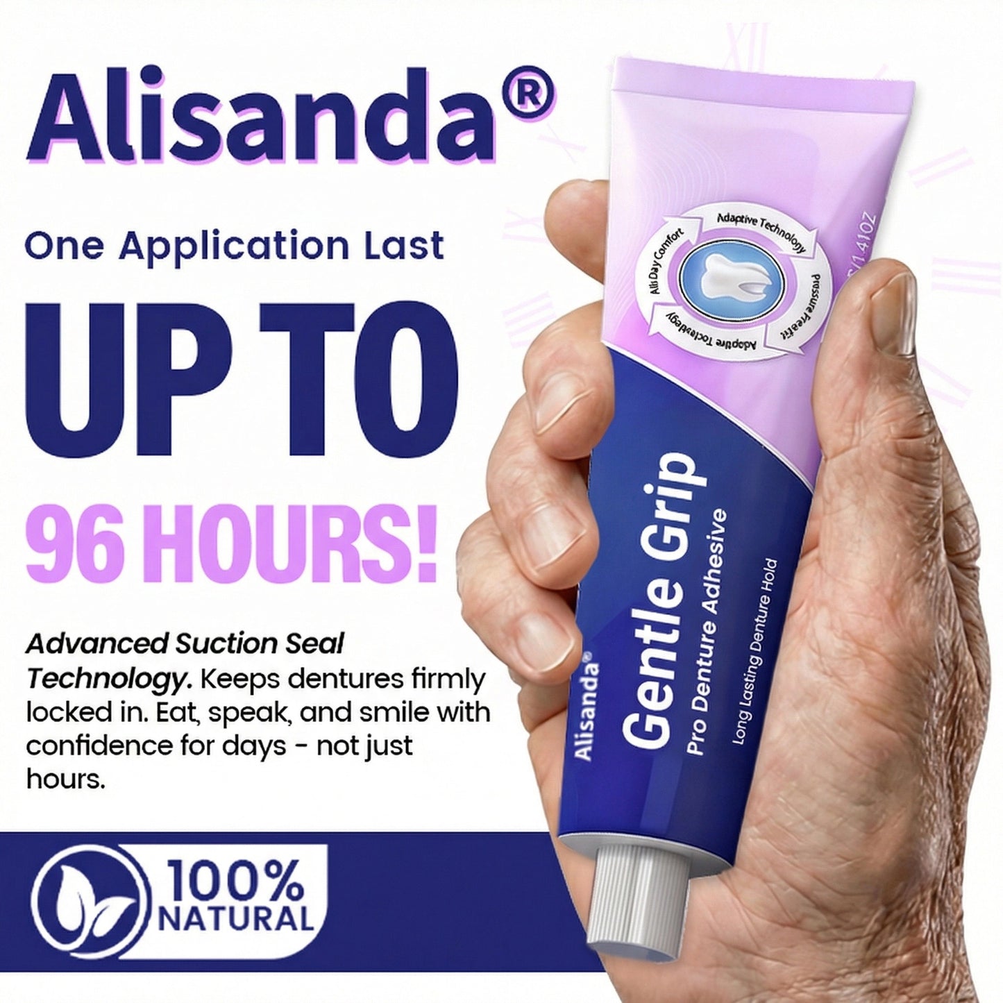Alisanda® 96-Hour Denture Adhesive: Secure Your Smile for 4 Full Days