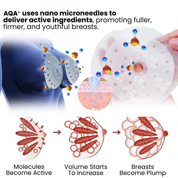 Experience the breakthrough in natural body sculpting. The AQA® Breast Enhancement Nano Patch is a revolutionary, non-invasive solution designed for women seeking to restore fullness, firmness, and lift. Whether due to aging, weight loss, or genetics, sagging and loss of volume can impact confidence. AQA® solves this using advanced Nano Microneedle Technology—hundreds of ultra-fine, 0.27mm dissolvable needles that create painless micro-channels to deliver potent botanical extracts deep beneath the skin’s surface. Unlike standard creams, AQA® ensures maximum absorption, stimulating collagen and tissue regeneration for a naturally rounder, firmer, and more youthful silhouette in just weeks.