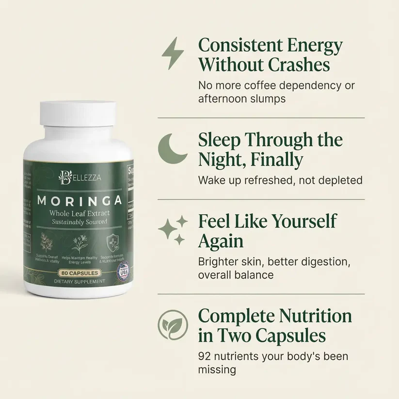 Moringa is naturally rich in antioxidants and vitamins often used in wellness routines to support: