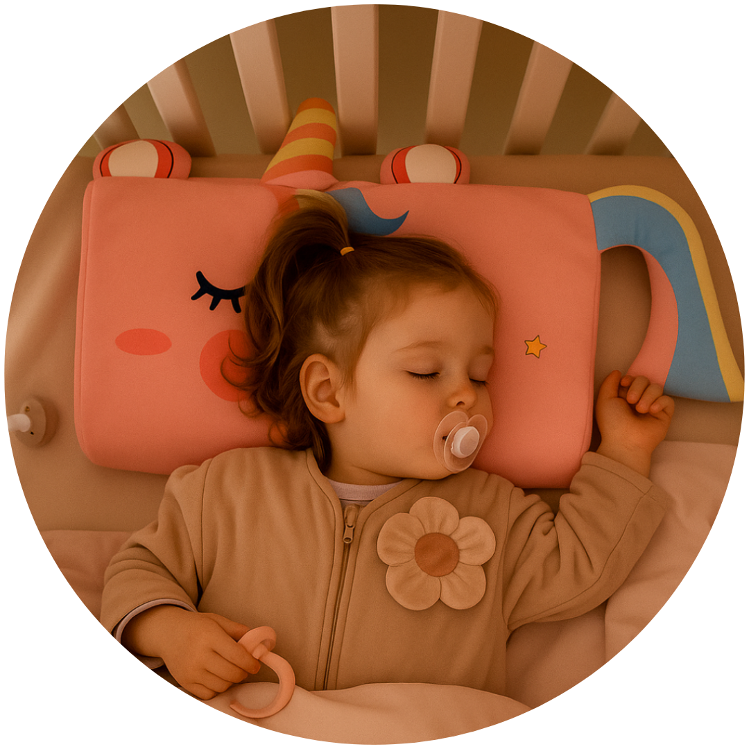 The pillow is shaped to gently support the head and neck, helping your child feel secure and comfortable while resting.