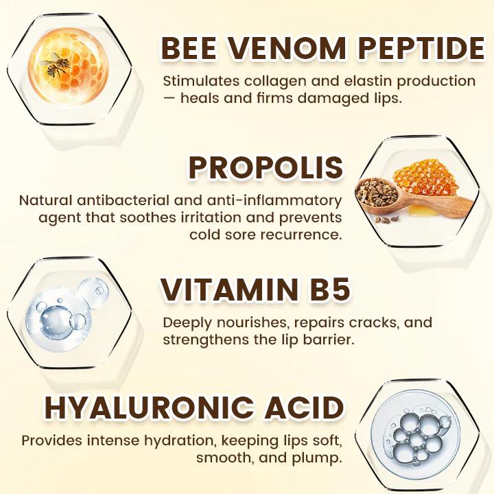 Ceoerty® BeeLixir Lip Repair Balm combines Bee Venom Peptide, Propolis, and Vitamin B5 to deeply repair tissue, eliminate bacteria, and rebuild your lips’ natural defense — so your lips stay soft, smooth, and healthy again.