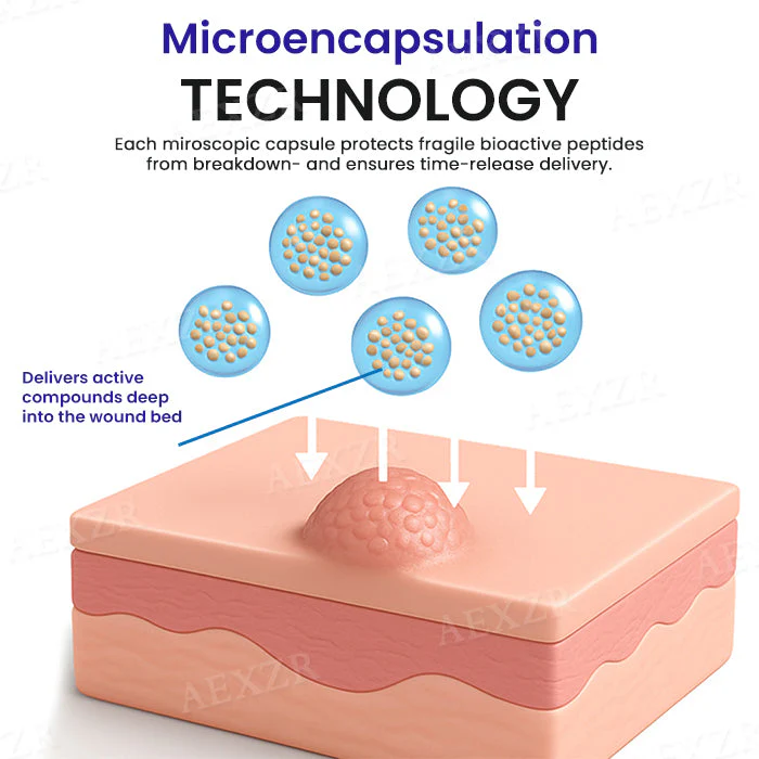 Microencapsulation technology then releases these actives gradually over time, creating a sustained therapeutic effect that continues to work long after application—without irritation or overexposure.