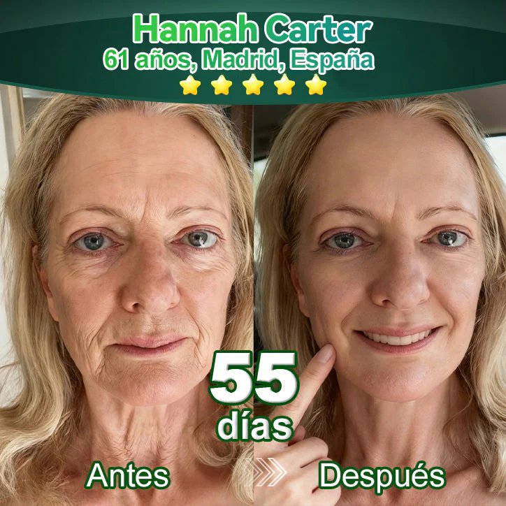 No filters, no makeup. My confidence is through the roof! I suspected I had rosacea, but I was never officially diagnosed. And now I am! I take it twice a day—just mix it with water—and every time I feel a gentle warmth all over my body. I’m not exaggerating: I notice changes almost every other day! I started on August 25th, continued taking it twice a day, and used a little sunscreen—literally, nothing else. It’s so simple and works so fast. My dark spots, rosacea, wrinkles… even my hair looks so much better now. Honestly, this is a total body booster, and I can’t go a single day without taking it anymore. I feel amazing and I 100% recommend it.— Mia Hughes, Valencia