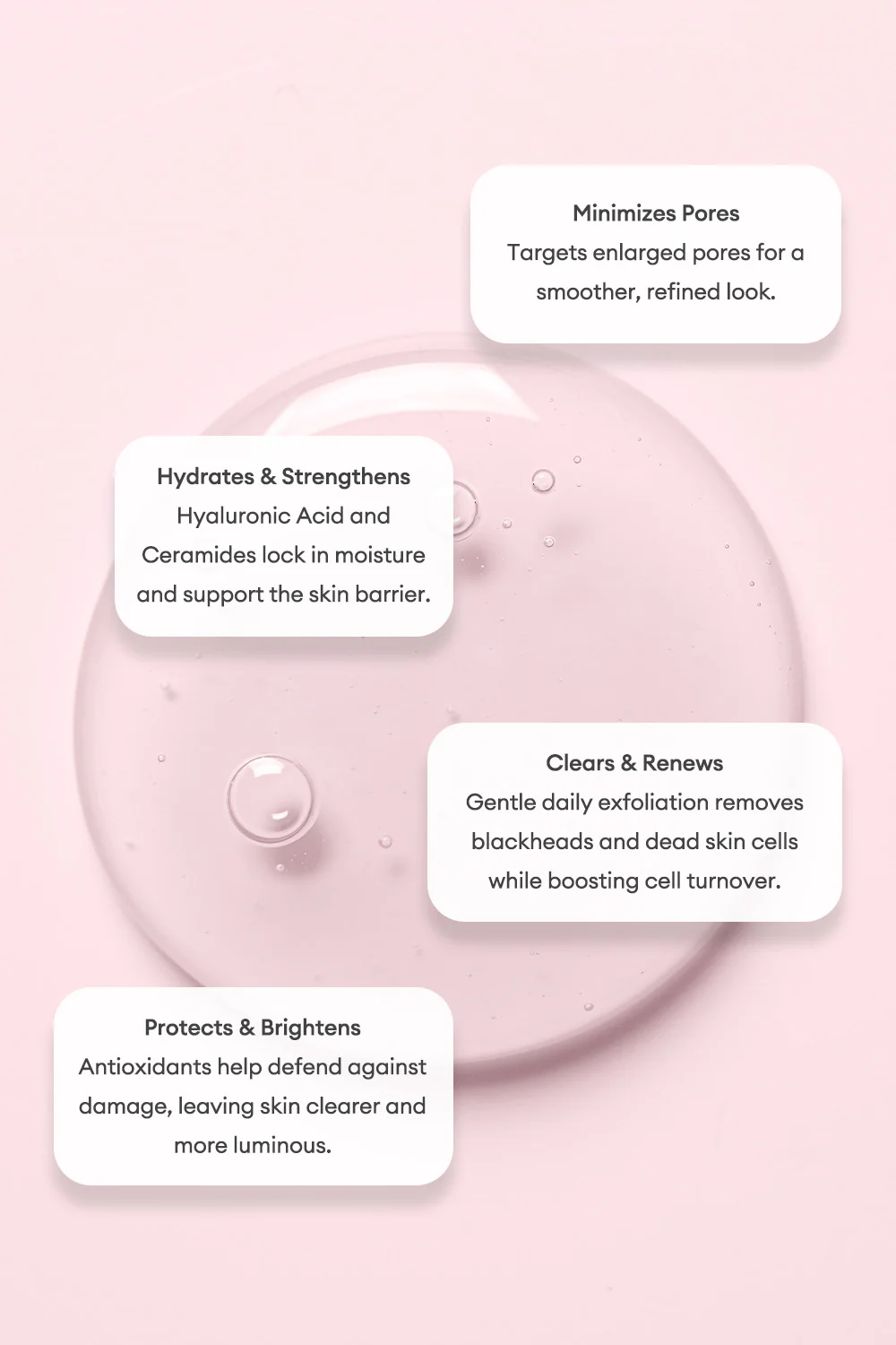 Pore-Reducing Formula. 4-Layer Barrier Support. PHA Exfoliation. Sensitive Skin Safe.
