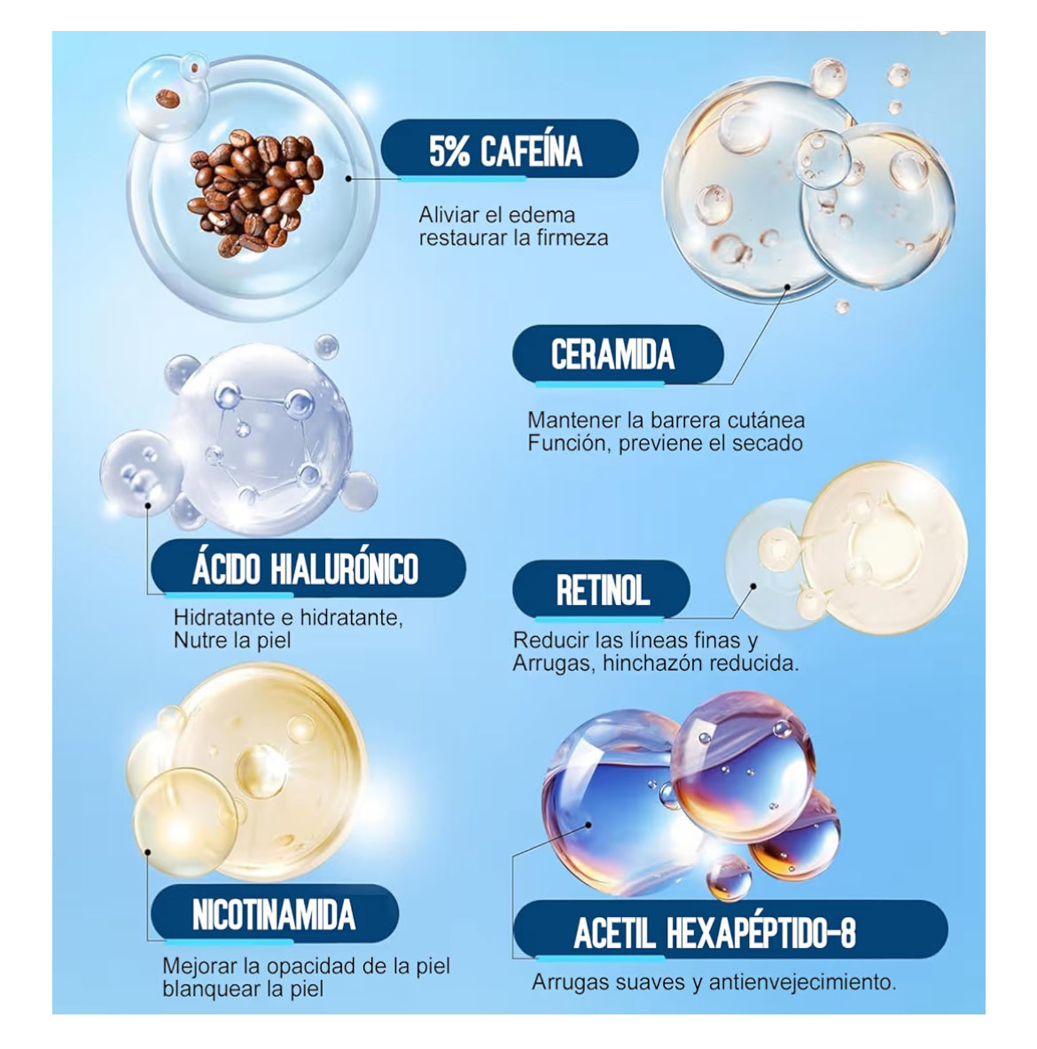 ⚡ 5% Caffeine Energy Shot: High-concentration caffeine constricts blood vessels to visibly shrink eye bags and fade dark, tired circles within the first week.