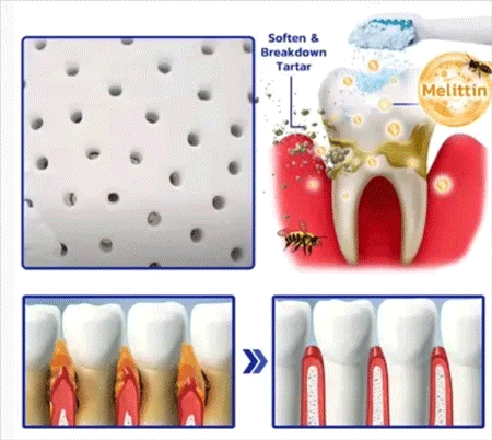 ✅ Thanks to its strong antibacterial and anti-inflammatory effects, it directly attacks harmful pathogens and dissolves dental plaque and tartar.