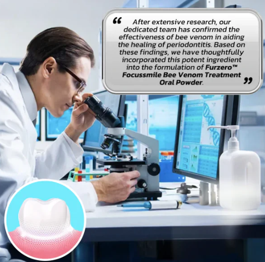 Furzero® Focussmile Mouthwash    with Bee Venom  is an innovative formula that combines five bioactive ingredients in a unique synergy, fighting the main causes of periodontal disease and supporting the regeneration of gums and tooth structure.  It is like stem cell therapy: it works at the cellular level and naturally regenerates lost gum and tooth tissue.