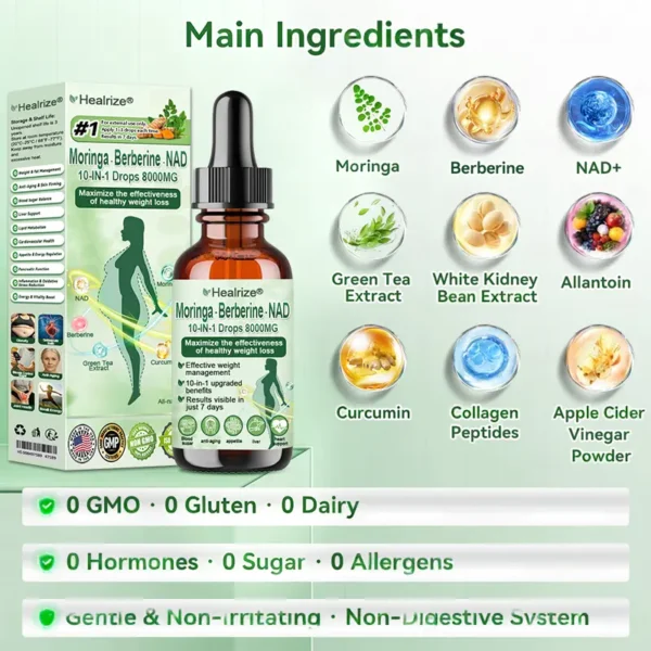 Healrizeยฎ 10-IN-1 Moringa * Berberine * NAD+ drops