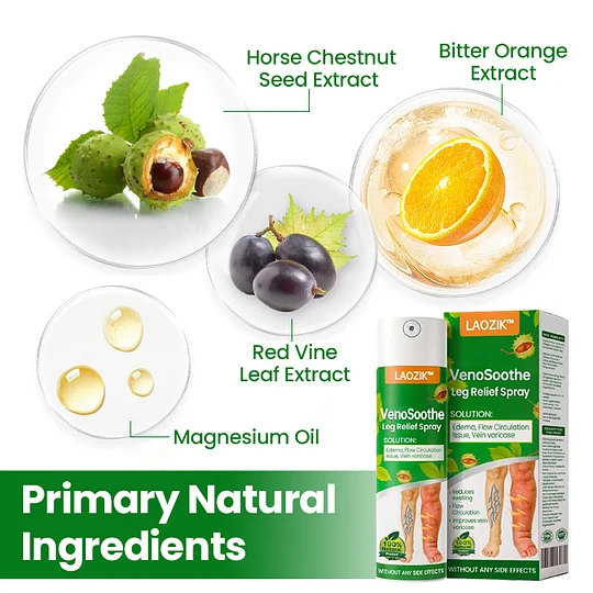 Do your legs feel like “tree trunks” by 5 PM? You aren’t alone—nearly 40% of adults suffer from venous insufficiency, where blood pools in the lower legs, causing painful swelling and tightness. LAOZIK™ VenoSoothe is a breakthrough dual-action spray that doesn’t just mask the pain—it repairs the cause. By combining medical-grade Horse Chestnut and Red Vine Leaf, it strengthens vein walls while Bitter Orange activates lymphatic drainage to flush out trapped fluids. No messy creams, no uncomfortable compression socks—just a fast-absorbing spray that delivers 52% volume reduction in as little as two weeks.