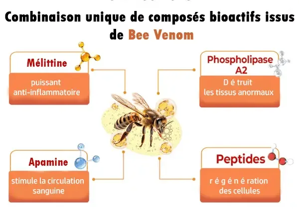 Increases blood circulation to deliver more nutrients to skin cells, helping damaged or aging skin regenerate faster. Bee Venom: The natural solution to soothe chronic skin conditions.