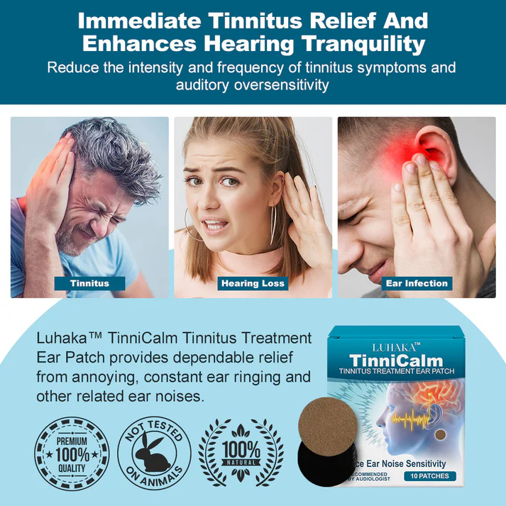 Luhaka™ TinniCalm Tinnitus Treatment Ear Patch is a cutting-edge product designed to alleviate tinnitus and associated ear discomfort. It utilizes a blend of natural ingredients and acupuncture principles to mitigate the symptoms of tinnitus, such as the perception of ringing, buzzing, or whistling sounds in the ears when there’s no external sound source.
