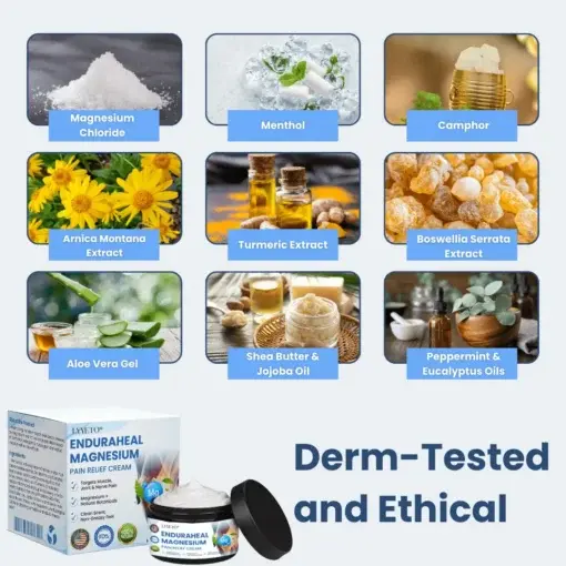 Ready to ease your pain and feel the difference? Lyyeto® EnduraHeal Magnesium Pain Relief Cream is your go-to solution for soothing arthritis, easing muscle tension, and calming nerve discomfort. Powered by magnesium and natural extracts, it works to reduce inflammation, improve circulation, and support faster recovery, naturally. Apply it and start feeling relief today!
