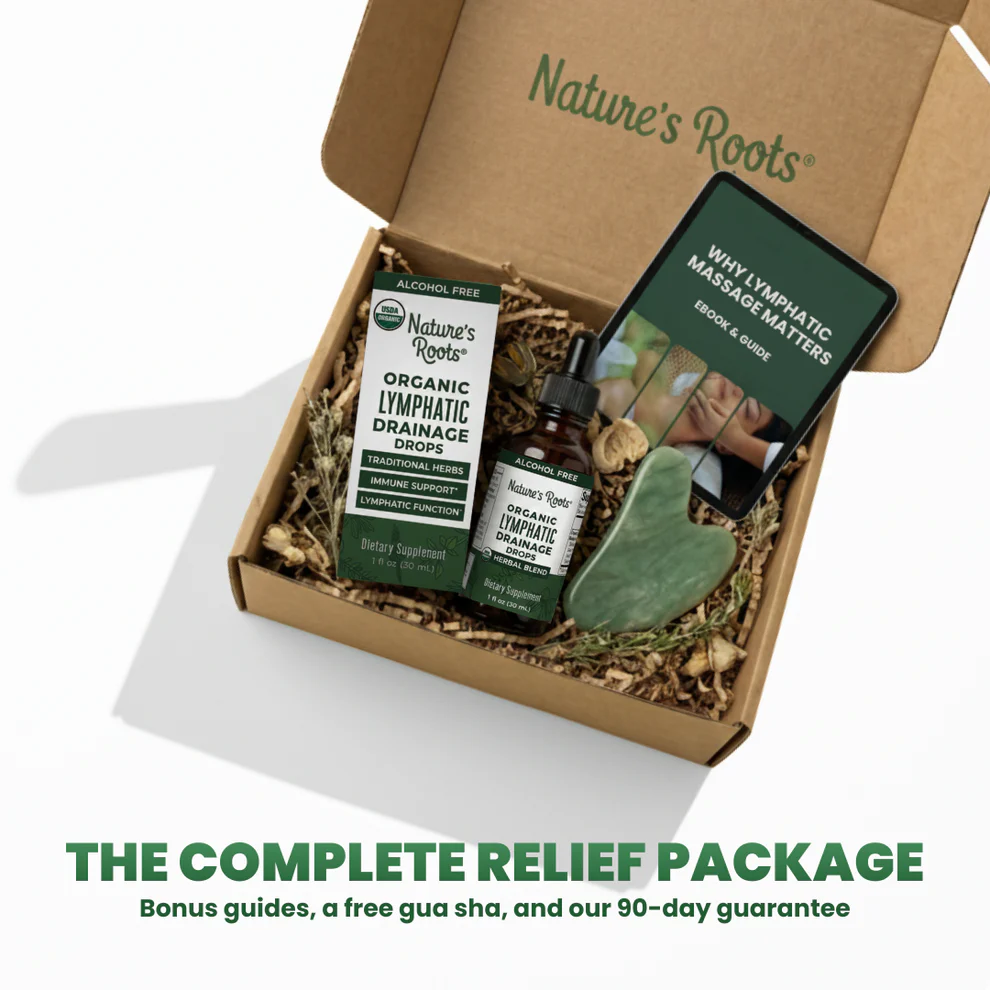 Natureβs Roots Lymphatic Drops use a gentle blend of time-tested herbs to support your bodyβs natural lymphatic flow, helping reduce the fluid buildup that causes puffiness, swelling, and discomfort.
