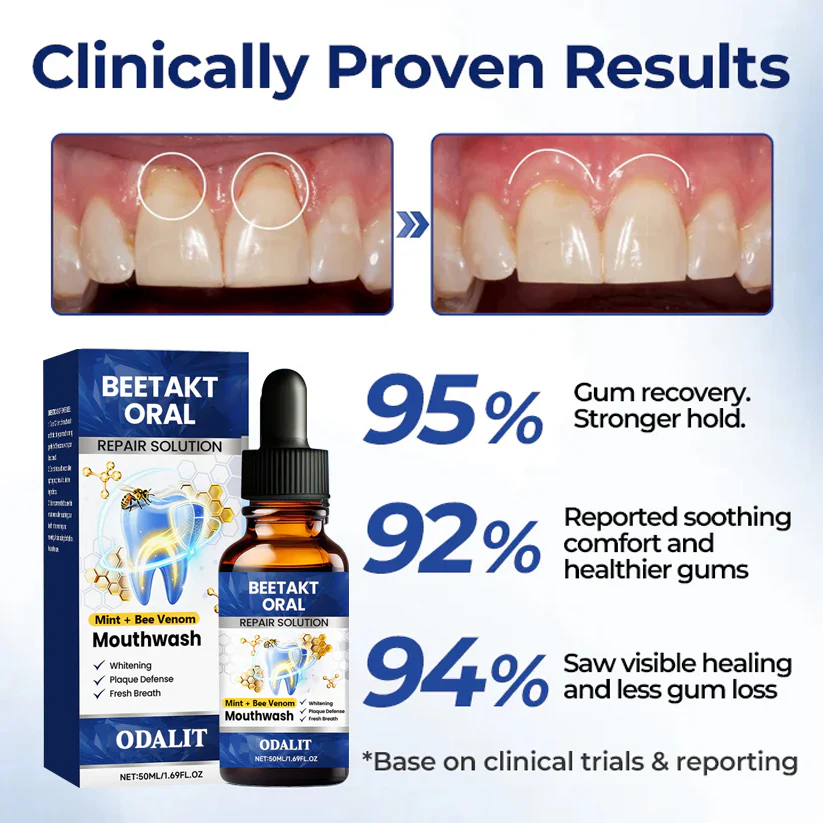 Don’t just mask bad breath—repair your smile at the cellular level. ODALIT™ Oral Repair Solution is a breakthrough dental treatment designed to reverse gum recession, eliminate periodontitis, and strengthen teeth from the inside out. Harnessing the potent anti-inflammatory power of Bee Venom (Melittin) and the regenerative science of Tideglusib, this solution softens calcified tartar and activates gum stem cells to restore healthy tissue in as little as 7 days. Whether you suffer from bleeding gums, extreme sensitivity, or thinning enamel, ODALIT™ provides a professional-grade, 100% natural alternative to invasive dental procedures. Experience stronger teeth and resilient gums with the power of nature’s most effective bio-actives.