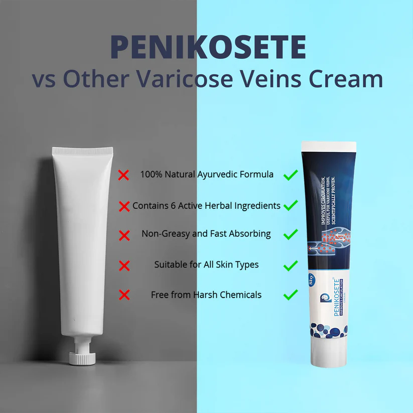 PENIKOSETE™ as a varicose veins cream, is a painless option and is likely preferred over other options which can be painful. It usually works very well for customers, who have earlier tried different kinds of stockings. PENIKOSETE™ is used for external application and hence it becomes a natural choice over tablets. It could work as a preventive cream, for people who have sedentary lifestyles and modern-day desk jobs. It is non- sticky and preferred by customers over sticky oils.