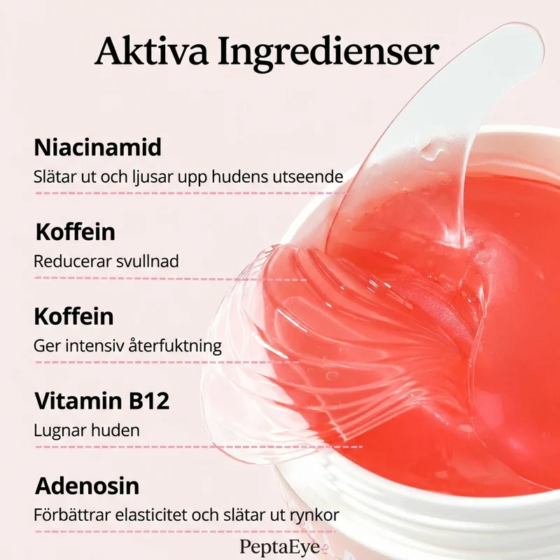 Helt fantastiska ögonmasker! PeptaEye ger verkligen resultat direkt. Mina mörka ringar har blivit ljusare och huden känns mycket stramare och piggare. Hydrogel-materialet känns väldigt lyxigt mot huden och doften är mild och behaglig. Det är den perfekta snabbfixen inför en fest eller efter en lång arbetsdag. Jag kommer aldrig att vara utan dessa i mitt badrumsskåp igen!