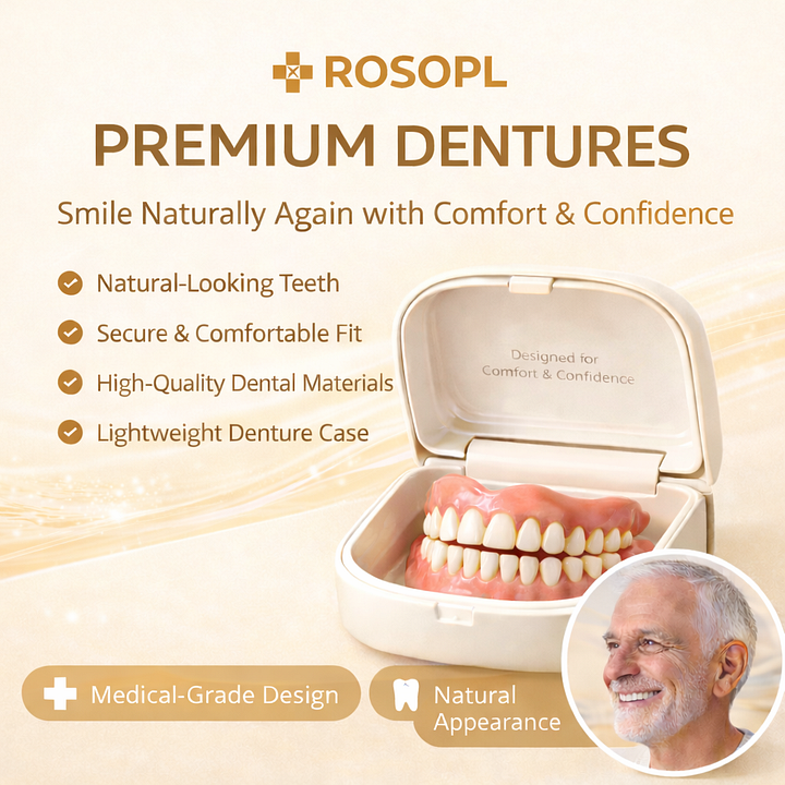 ROSOPL™ Custom-Fit Functional Dentures are designed for people who want a natural-looking smile without dentist visits, messy adhesives, or uncomfortable slipping.