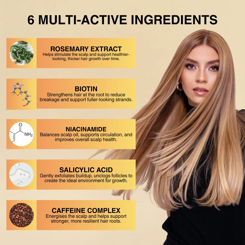 Delivers concentrated active ingredients directly to key areas like the hairline, temples, and part, helping support visibly fuller-looking hair exactly where it’s needed most.