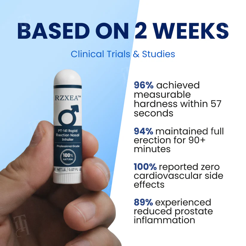Why wait an hour for a pill when you can be ready in less than a minute? RZXEA™ PT-141 is the world’s first rapid-response nasal inhaler designed for spontaneous, high-performance intimacy. Using advanced Muco-Mist™ technology, it bypasses the digestive system and liver, delivering active peptides directly into your bloodstream and neural pathways. The result? A full, natural erection in just 57 seconds—without the headaches, vision blur, or heart palpitations associated with traditional blue pills. Safe for men with heart conditions and discreet enough to fit in your pocket, RZXEA™ puts you back in control of the moment.
