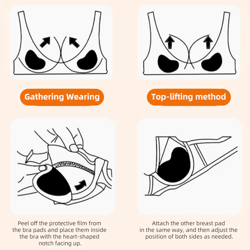 Apply: Place the insert inside your bra or garment, ensuring the heart-shaped concave side faces up for maximum lift.